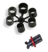 Zvolte si vhodný adaptér (na hadici) podle velikosti ventilku na nafukovaném předmětu. Připojte hadici ke spojovací hubici (inflate).