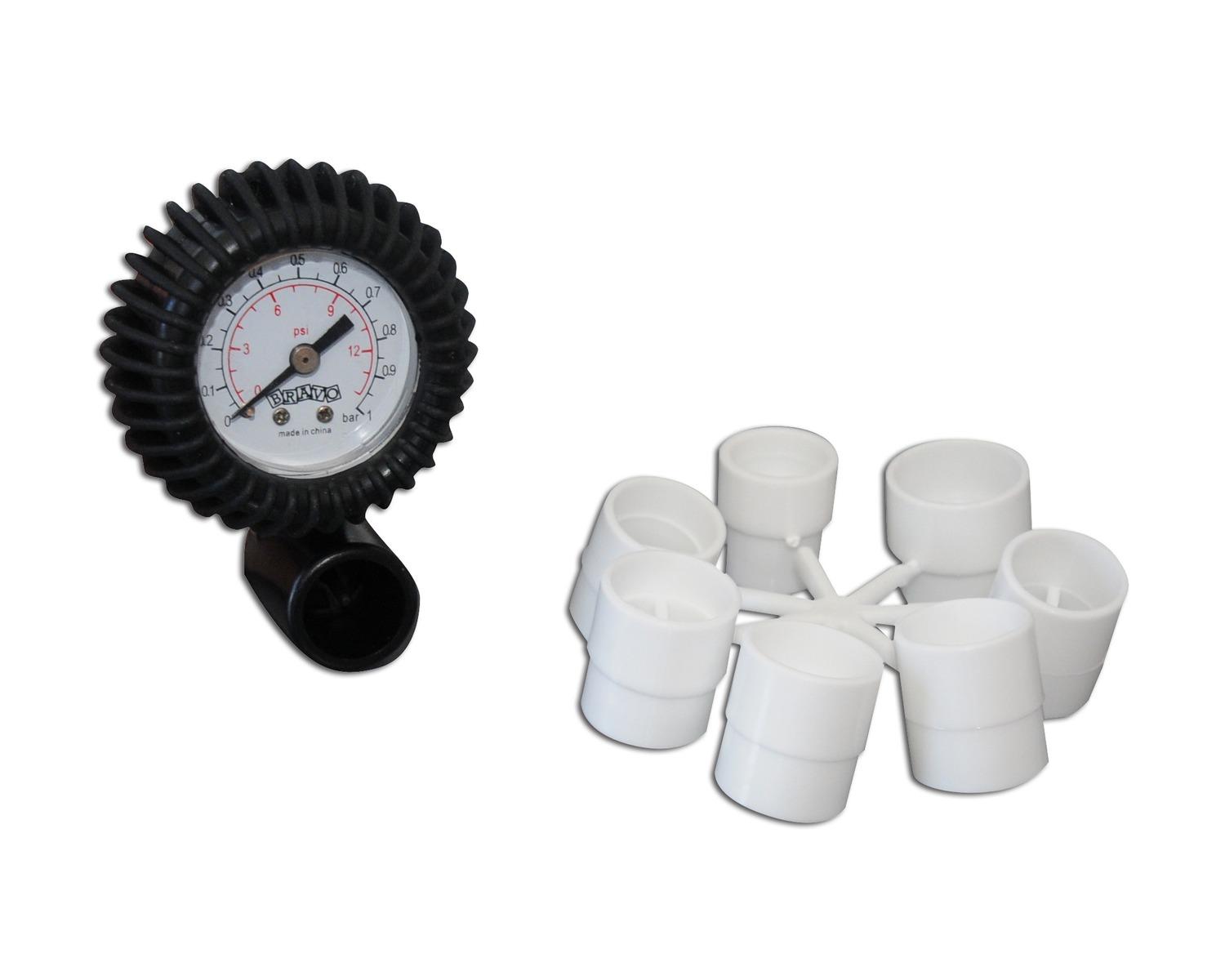 Manometr - rovný (0-1 bar) vč. sady redukcí. BRAVO SP 90 sup