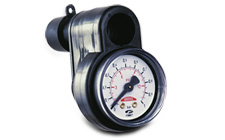 Manometr slouží k měření tlaku vzduchu v nafouknuté lodi. Doporučená hodnota tlaku je uvedena na každém typu lodi (0,2 nebo 0,25 Bar)