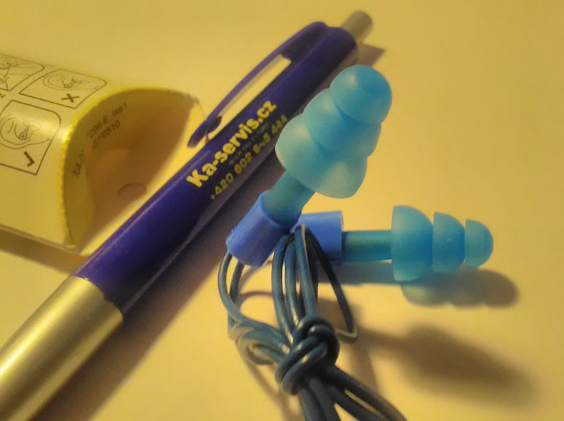 Tvarované zátky univerzální velikosti se třemi velmi jemnými lamelami (stromečkové) a zaváděcí rukojetí, lehce omyvatelné, spojovací vlákno v poloze za krkem snižuje nebezpečí jejich ztráty v době, kdy nejsou používány