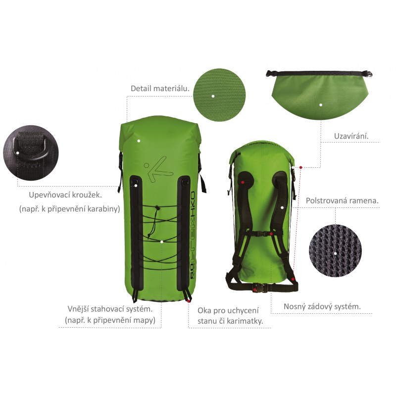 Trek 60L je 60 litrový vodotěsný a velmi odolný batoh na různé vodácké aktivity.