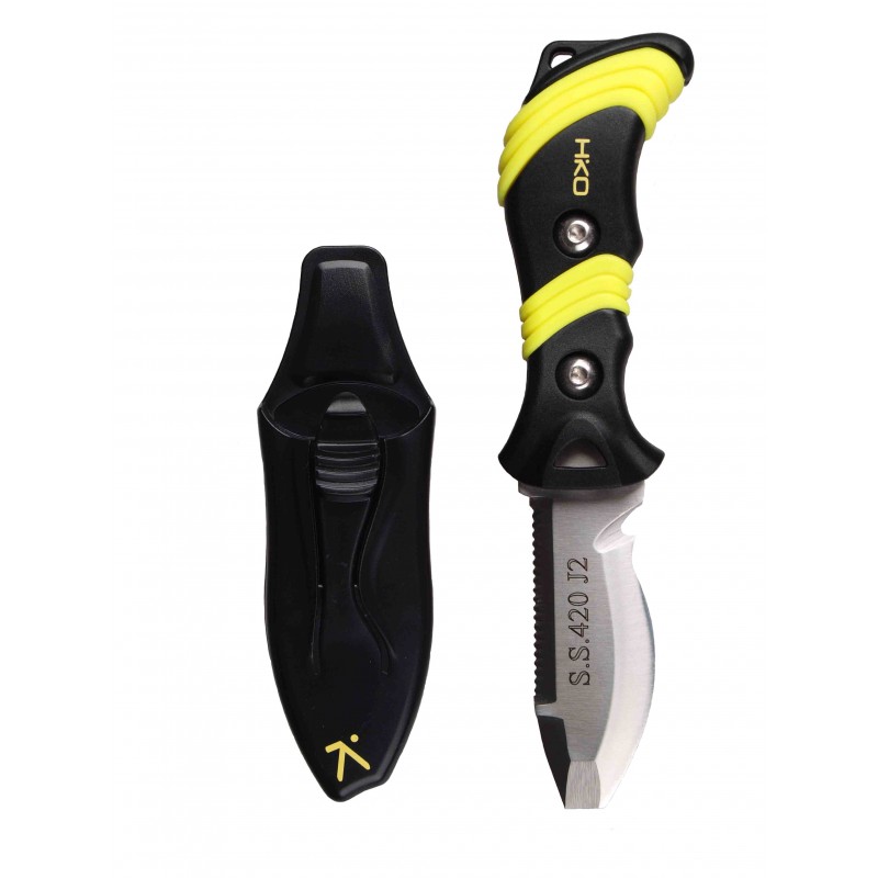 Záchranářský nůž s ergonomicky tvarovanou rukojetí.