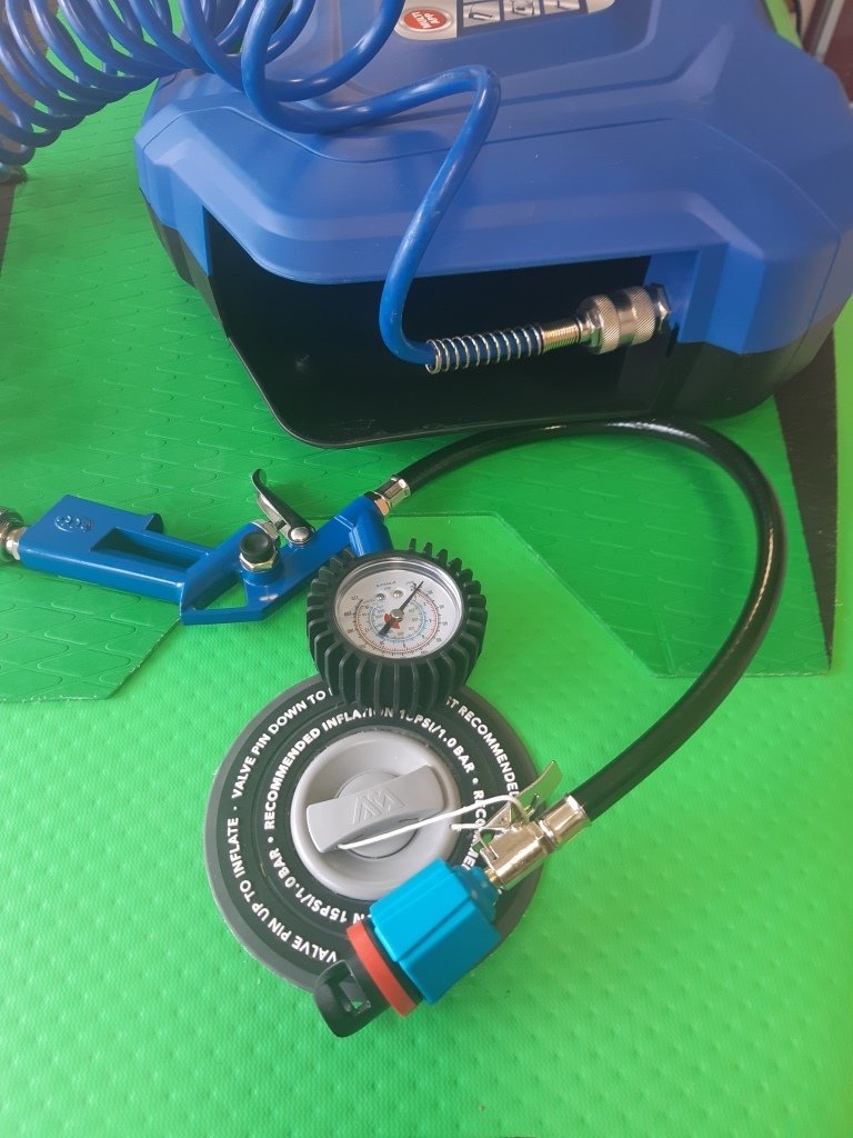 Adaptér vám umožní nafouknout váš paddleboard klasickou pumpou nebo kompresorem s koncovkou na autoventilek
