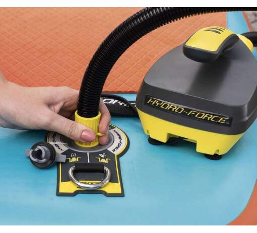 Elektrické vzduchové fokadlo Hydro-Force ™ Auto-Air slibuje rychlé a snadné nafouknutí během několika minut. Díky snadno použitelným tlačítkovým ovladačům a snadno čitelné obrazovce LCD stačí nastavit požadovaný tlak a nechat čerpadlo foukat.