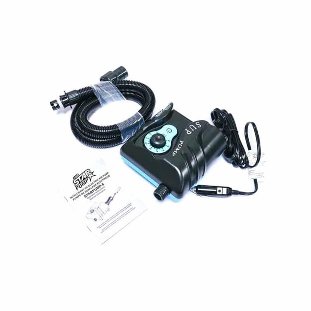 Skladná elektrická pumpa STAR 6 určená pro nafukování paddleboardů. Zdrojem napájení je klasická autozásuvka na 12V. Na těle pumpy nalezneme jednoduchý otočný přepínač, díky kterému nastavíme požadovaný tlak. Jakmile pumpa dosáhne požadovaného tlaku, automaticky se vypne.