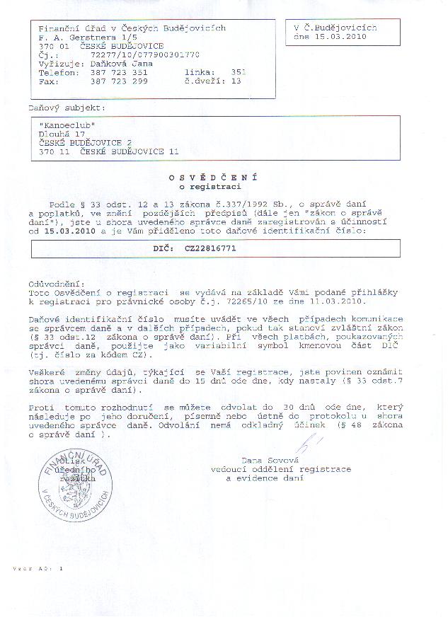Dokumenty KanoeClub o.s.